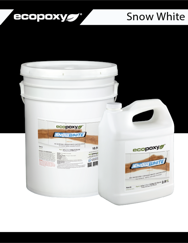 SnowWhite es un epóxico ecológico con las mismas características y virtudes que FlowCast. Con una relación 2.5:1. La diferencia radica en su color blanco de fábrica. De esta forma, nuestros clientes más exigentes obtienen un blanco perfecto en sus creaciones.